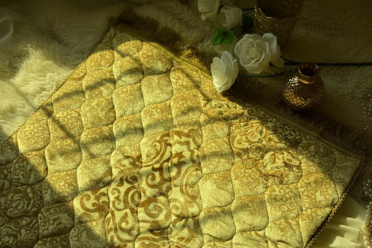 Deal 3 – Golden Tazkira Velvet Quran Set with Prayer Mat