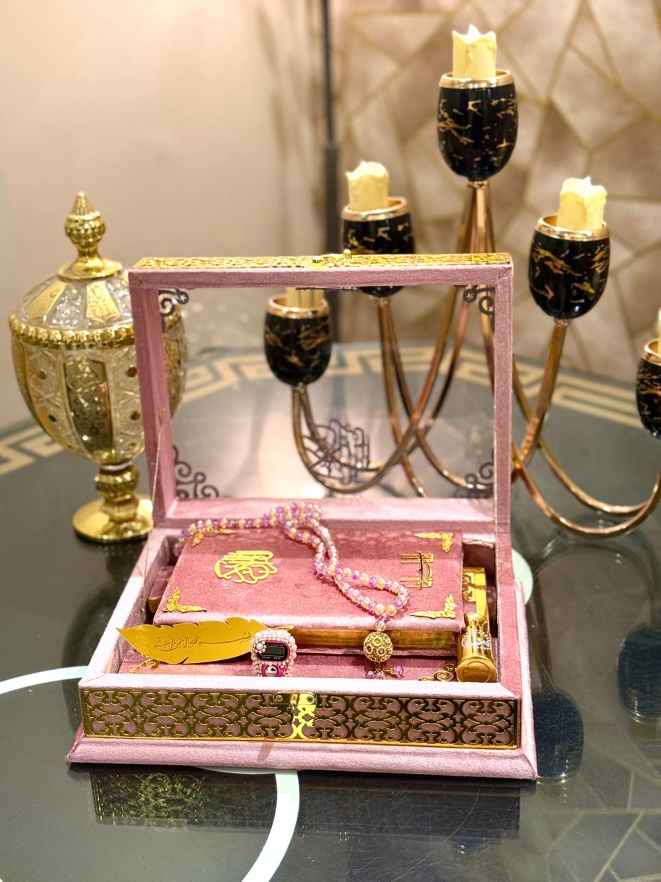 The Ziwaj Pink Transparent Velvet Quran Set represents a perfect balance of tradition and modern elegance — ideal for gifting during Ramadan, weddings, anniversaries, or as a timeless keepsake for your home.